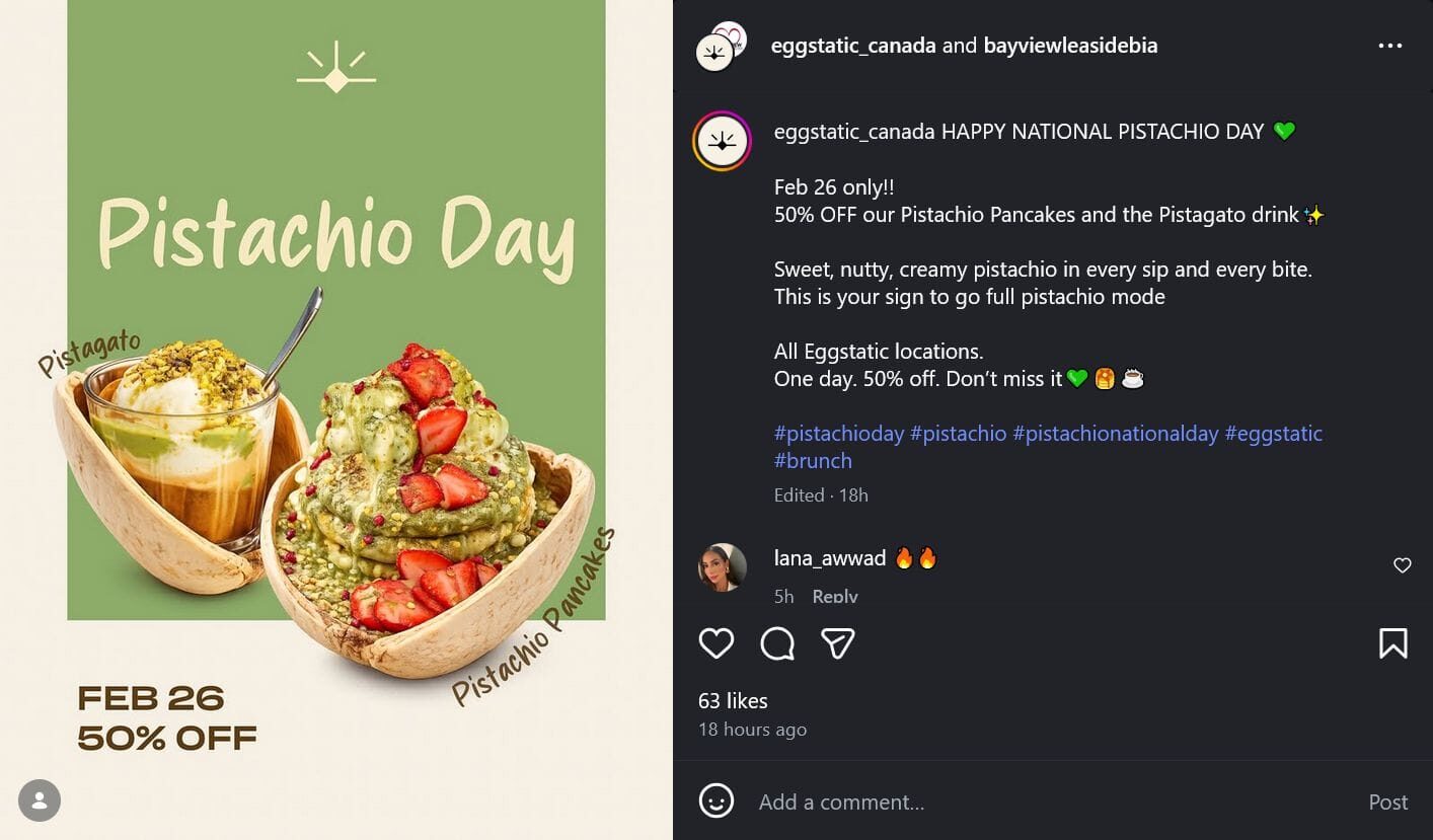 Pistachio Pancakes & Pistagato drink, 50% off at Eggstatic!